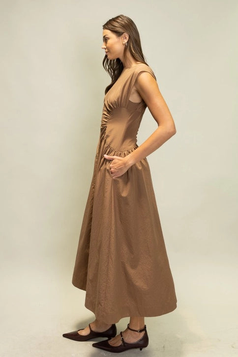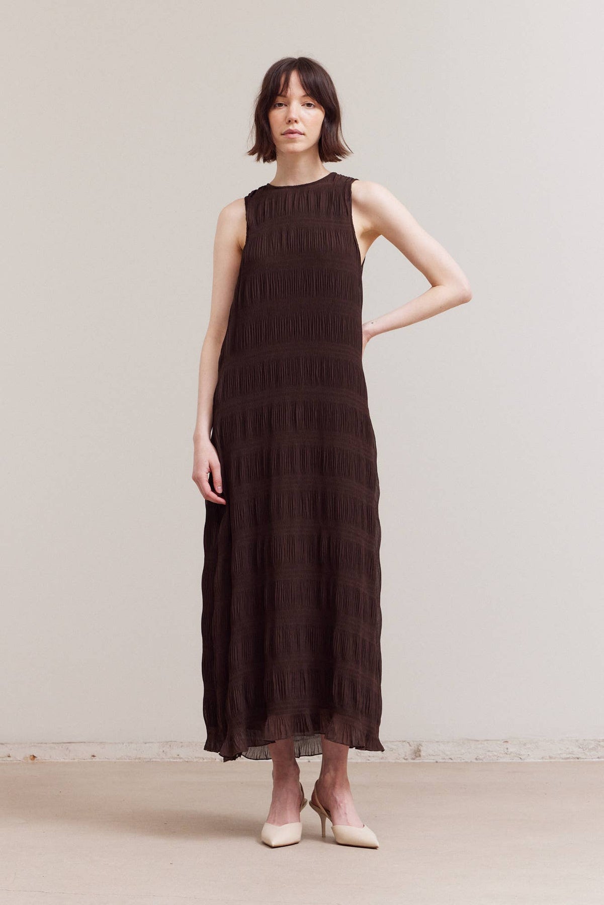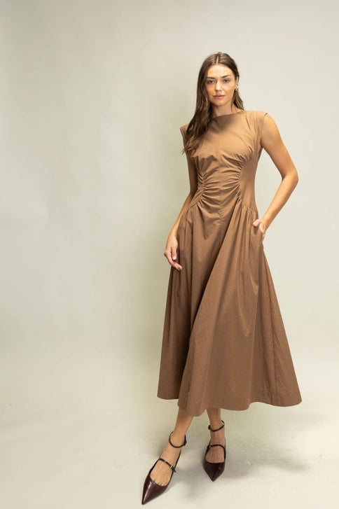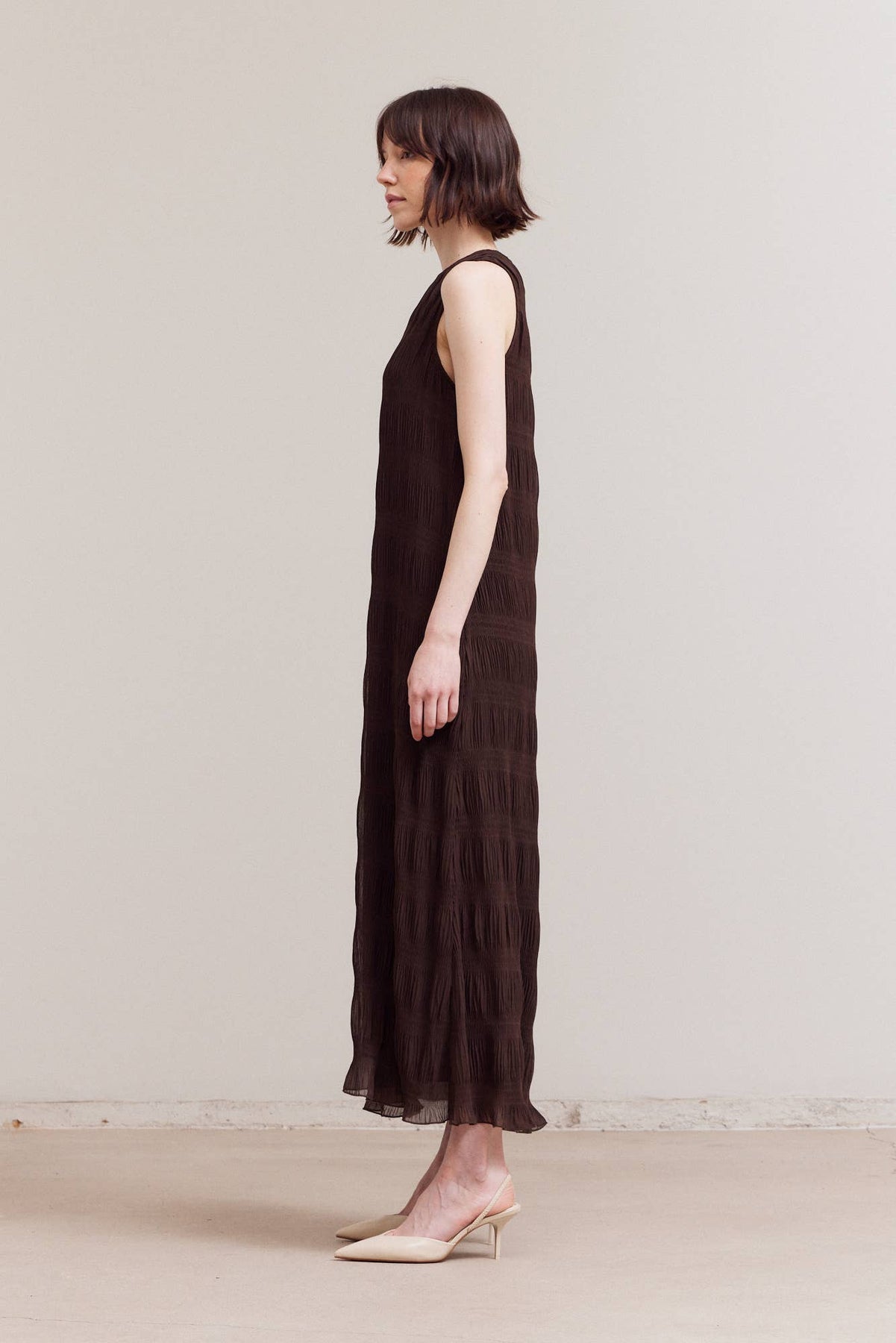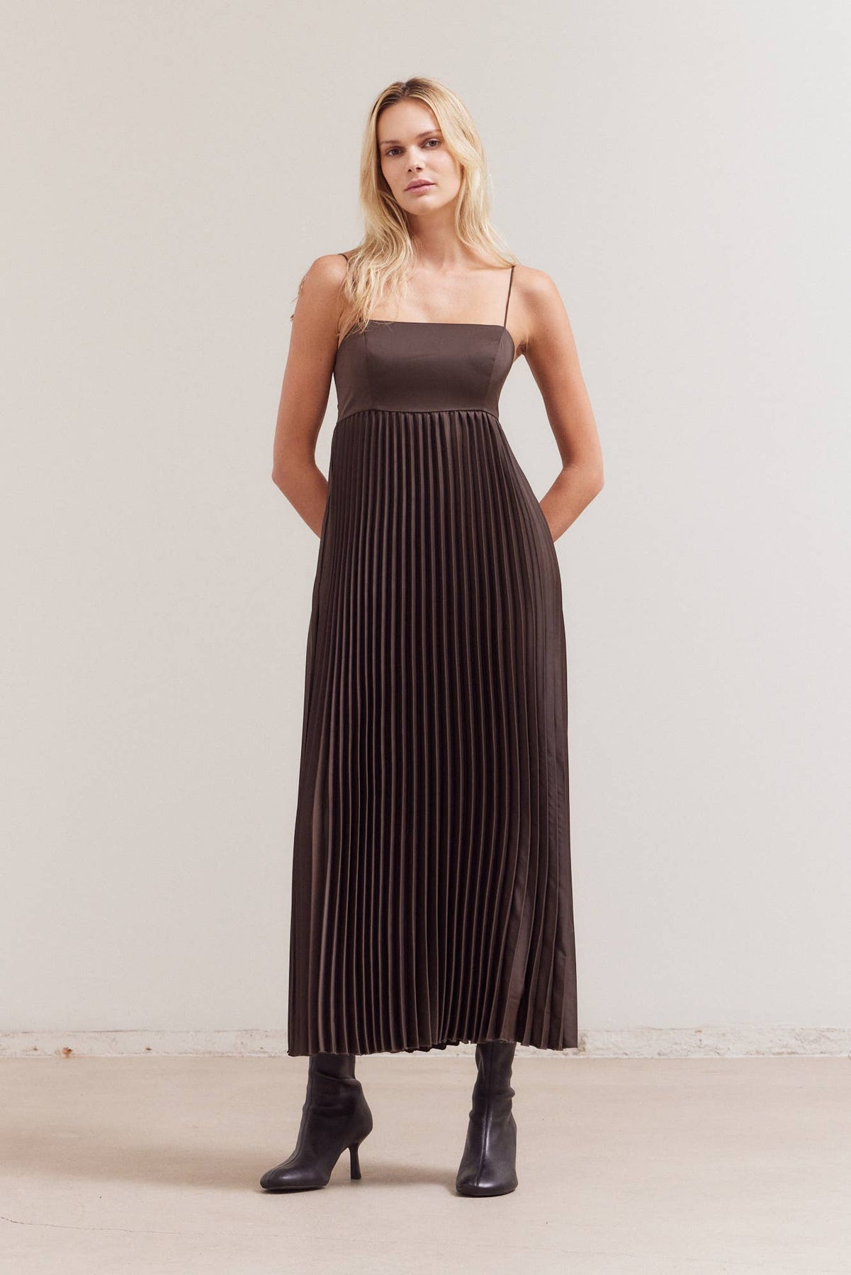 -Pleated Front Detail: Adds texture and sophistication to the dress, creating a flattering silhouette.