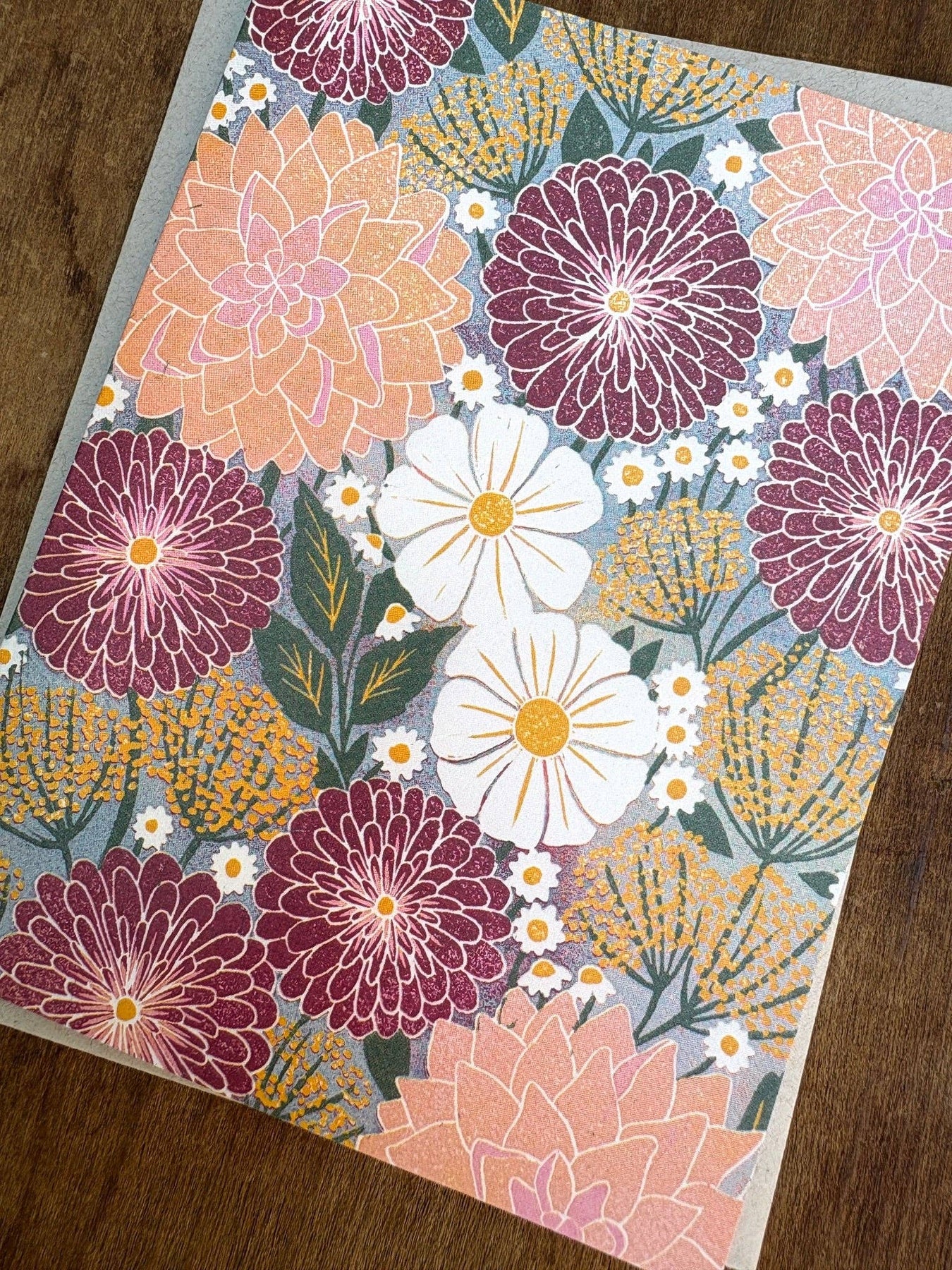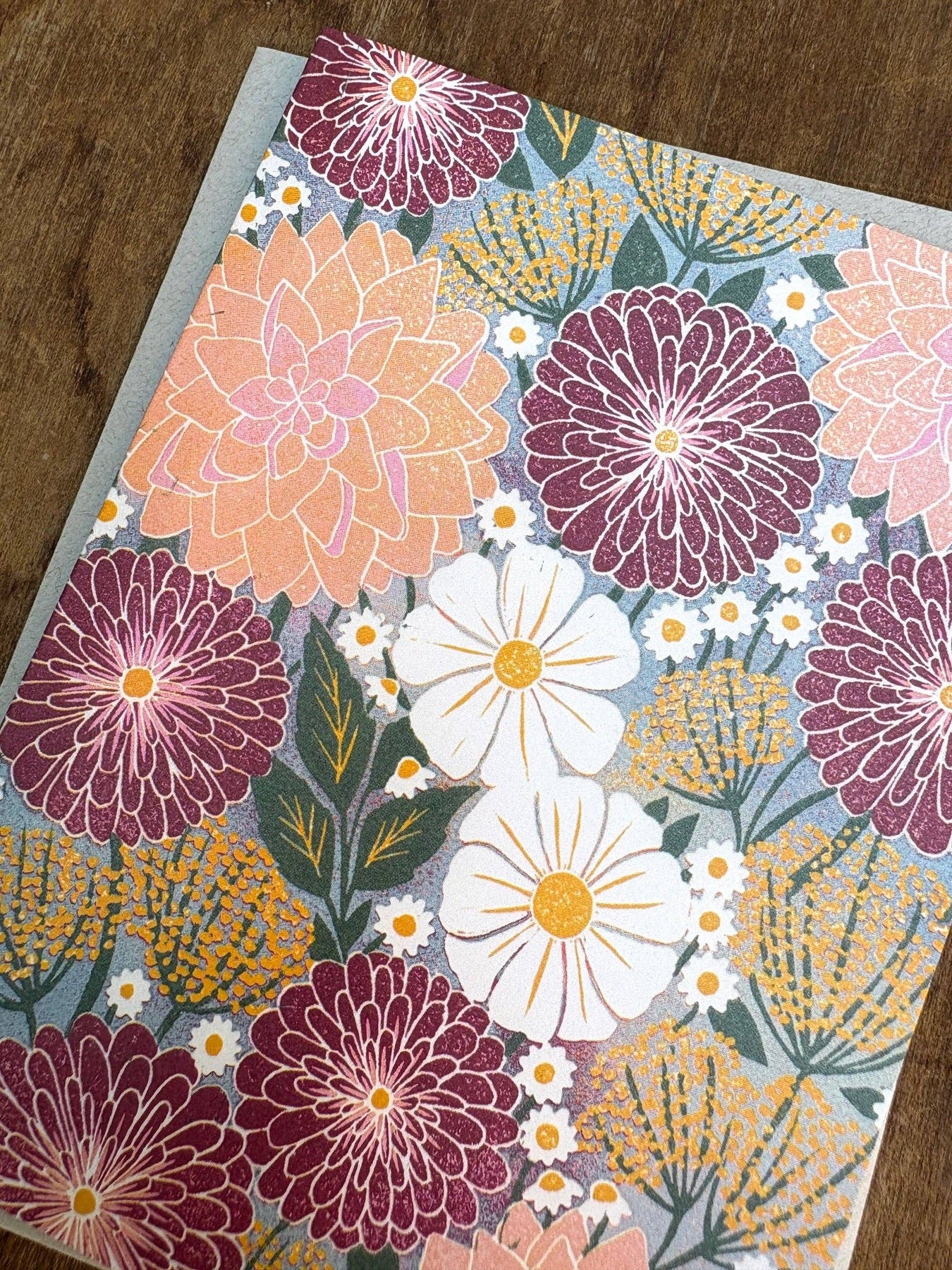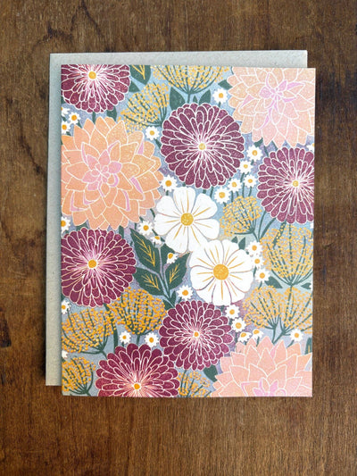 A Katharine Watson offset printed card, printed in Maine on 100lb taupe cardstock with blank ink. Each card is a standard A2 size, 5 ½” by 4 ¼”, is blank on the inside, and comes with a neutral taupe envelope. For her offset printed cards, Katharine begins each greeting card design with a hand-carved linoleum block, sketch, or watercolor, which is digitally translated and later, individually printed by our local printing partners.
