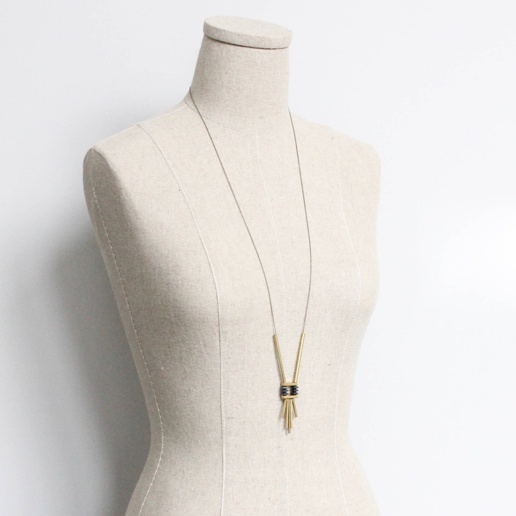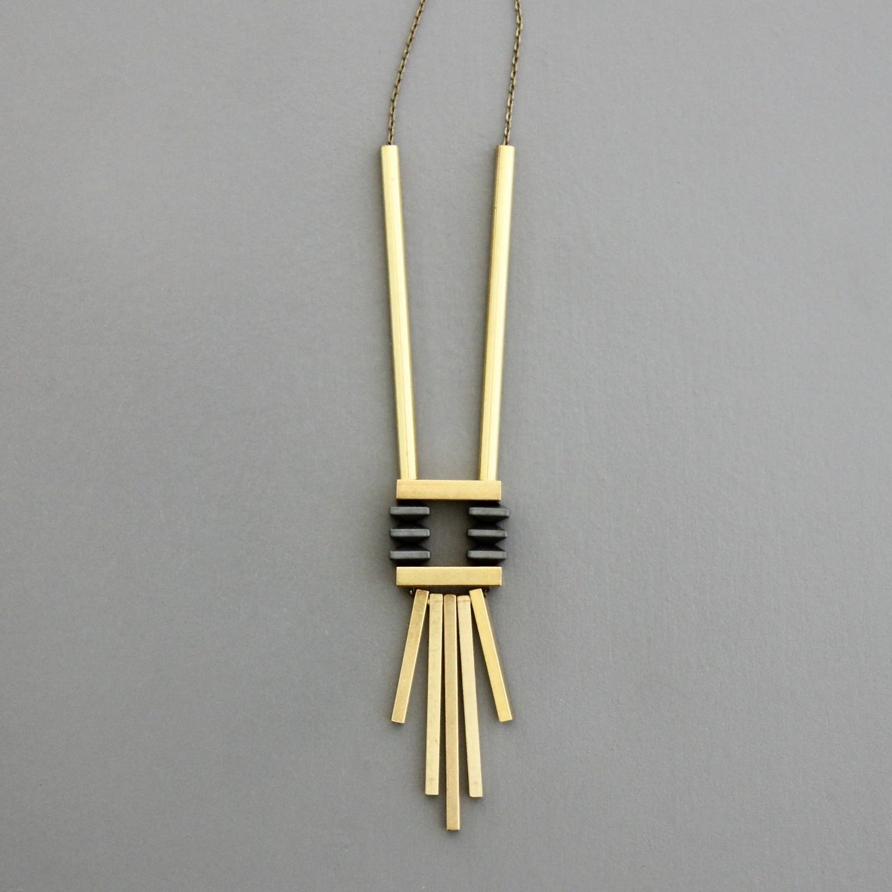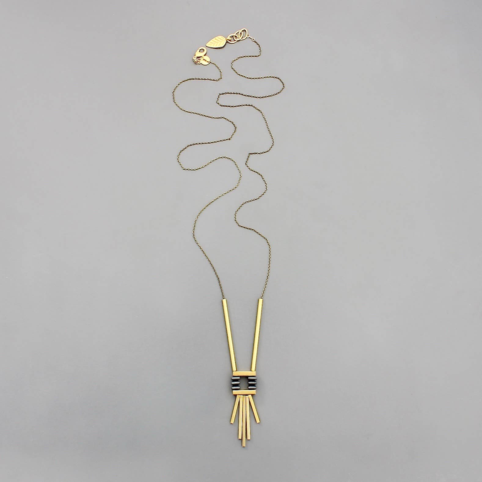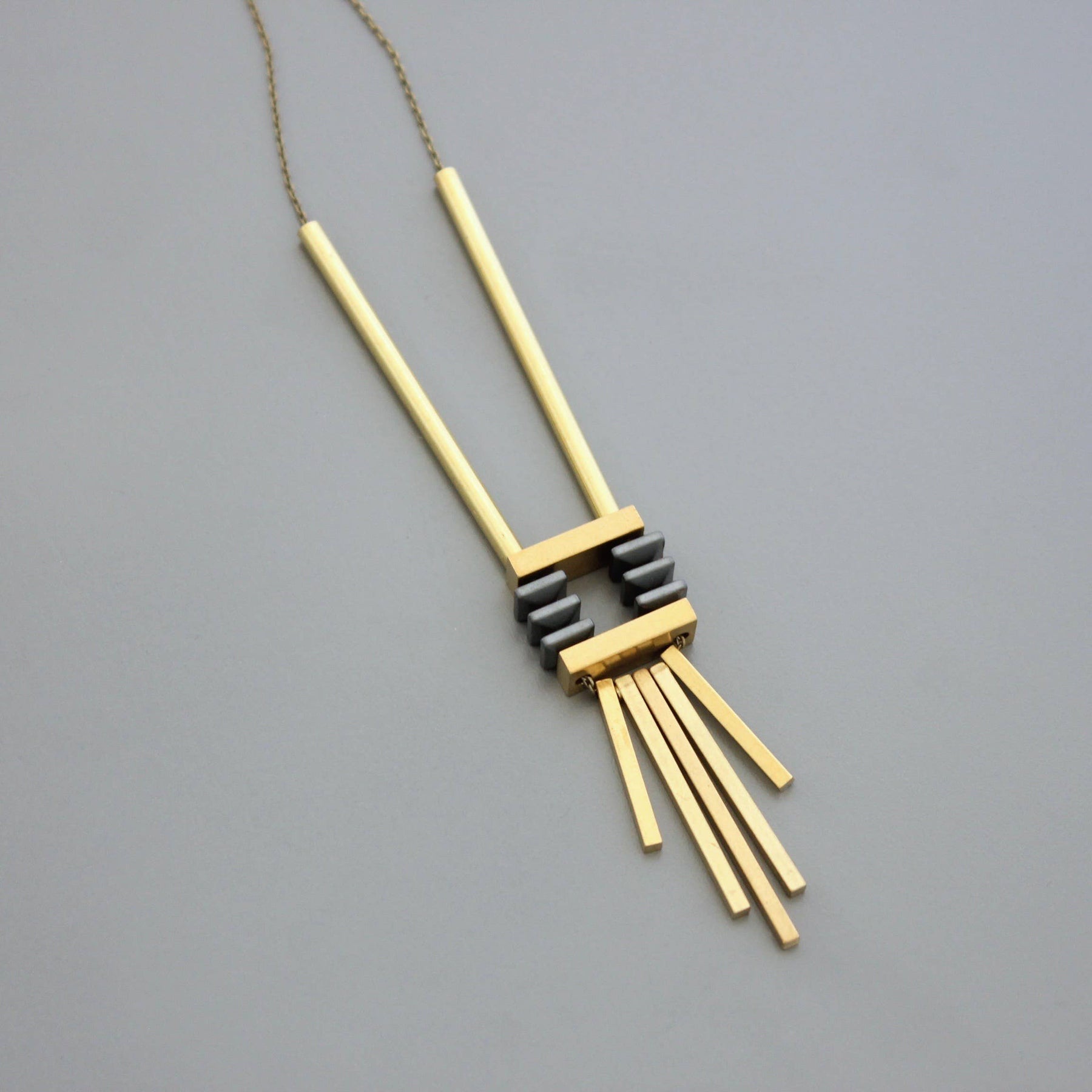 32" necklace with hematite and brass. 1 inch extender.